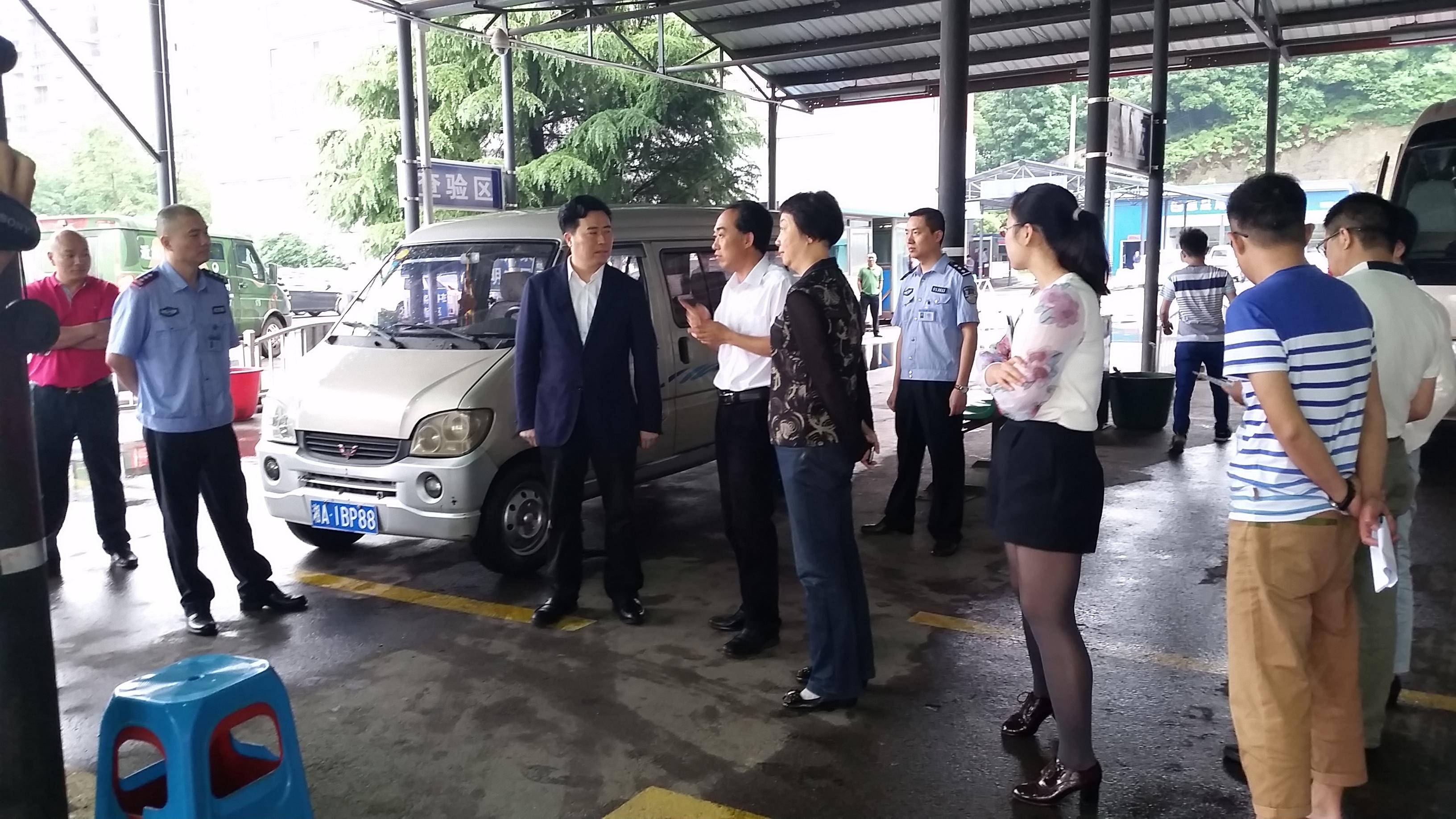 接着黎副市长来到尾气检测车间,观看了尾气检测全过程,我公司城西站站长符树民向黎副市长详细介绍了检测全过程。长沙市机动车尾气监管中心的主任刘劲向黎副市长详细介绍了目前长沙市实行的尾气检测标准及黄绿标车辆划分标准。