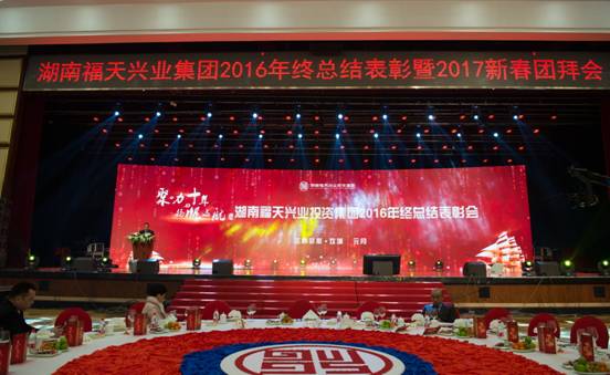 1月16日,福天兴业投资集团“聚力十年·扬帆远航”2016年终总结表彰会暨2017新春团拜会在长沙圣爵菲斯大酒店隆重举行。集团嘉宾、员工共1000余人共同参加了这场年度盛典。