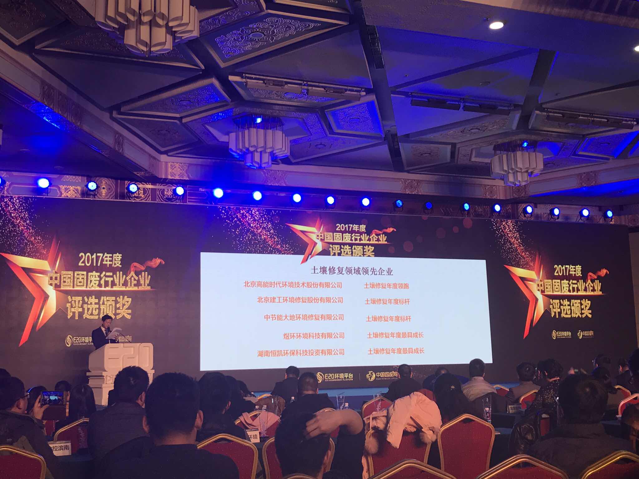 12月15日,由E20环境平台和中国城市建设研究院共同主办的“2017(第十一届)固废战略论坛”正式在北京开幕,本次论坛现场揭晓了2017年度(第九届)中国固废行业企业评选结果,恒凯环保荣获2017年度中国固废行业细分领域土壤修复领域领先企业奖。