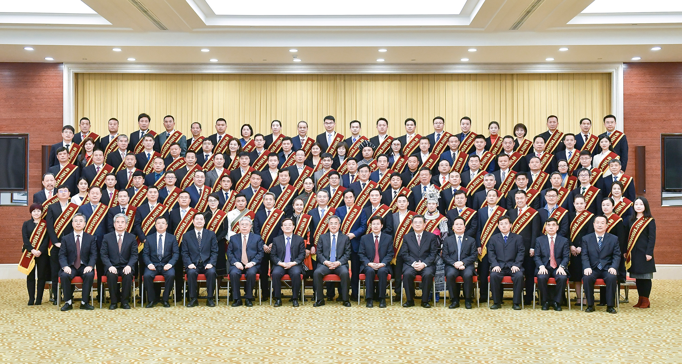 会前,中央政治局委员、国务院副总理胡春华接见“万企帮万村”精准扶贫行动先进民营企业代表并合影。