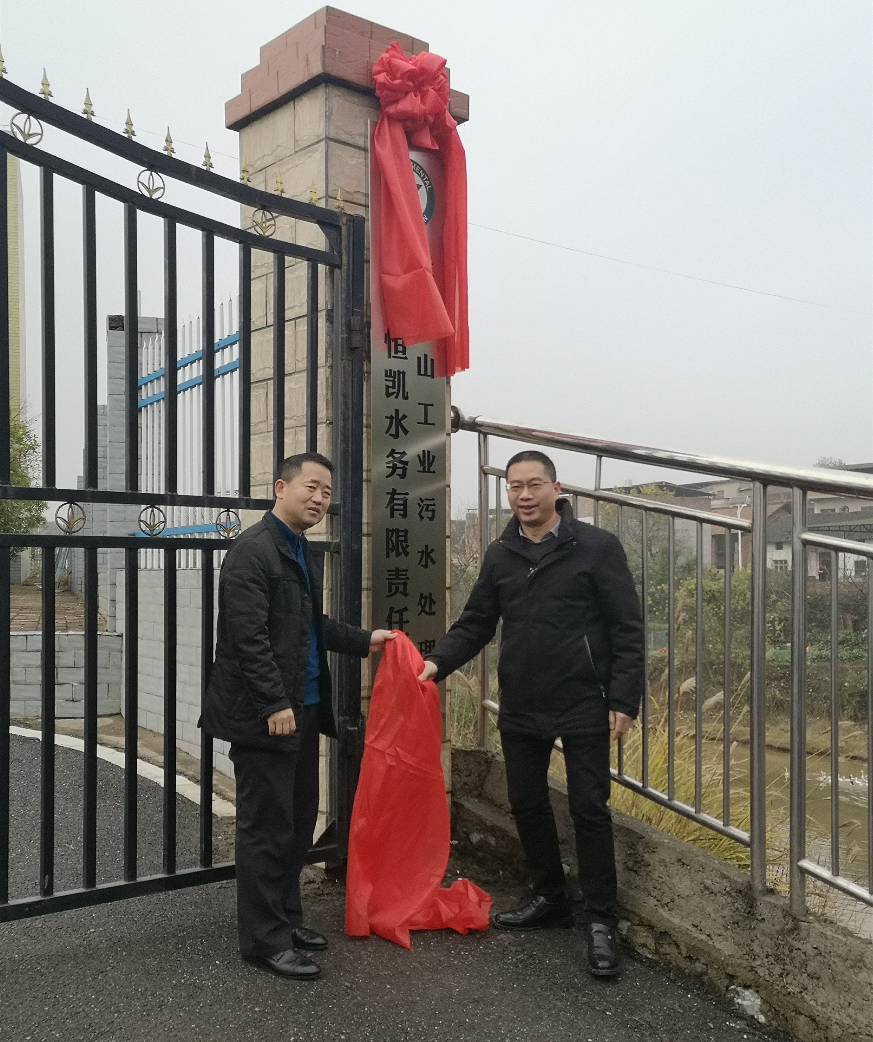 2020年1月1日,常宁水口山工业污水处理厂揭牌仪式隆重举行,这标志着恒凯环保污水处理业务实现2020年开门红。常宁水口山经开区管委会主任张志斌,常宁市环保局副局长吴洪武,监察大队大队长郭秀恒,水口山控股集团环保投资有限公司总经理刘建新、副总经理邓科,恒凯环保副总裁莫唐文、污水运营总监张粤湘等领导参加了揭牌仪式,与污水处理厂全体员工共同见证这一重要时刻。
