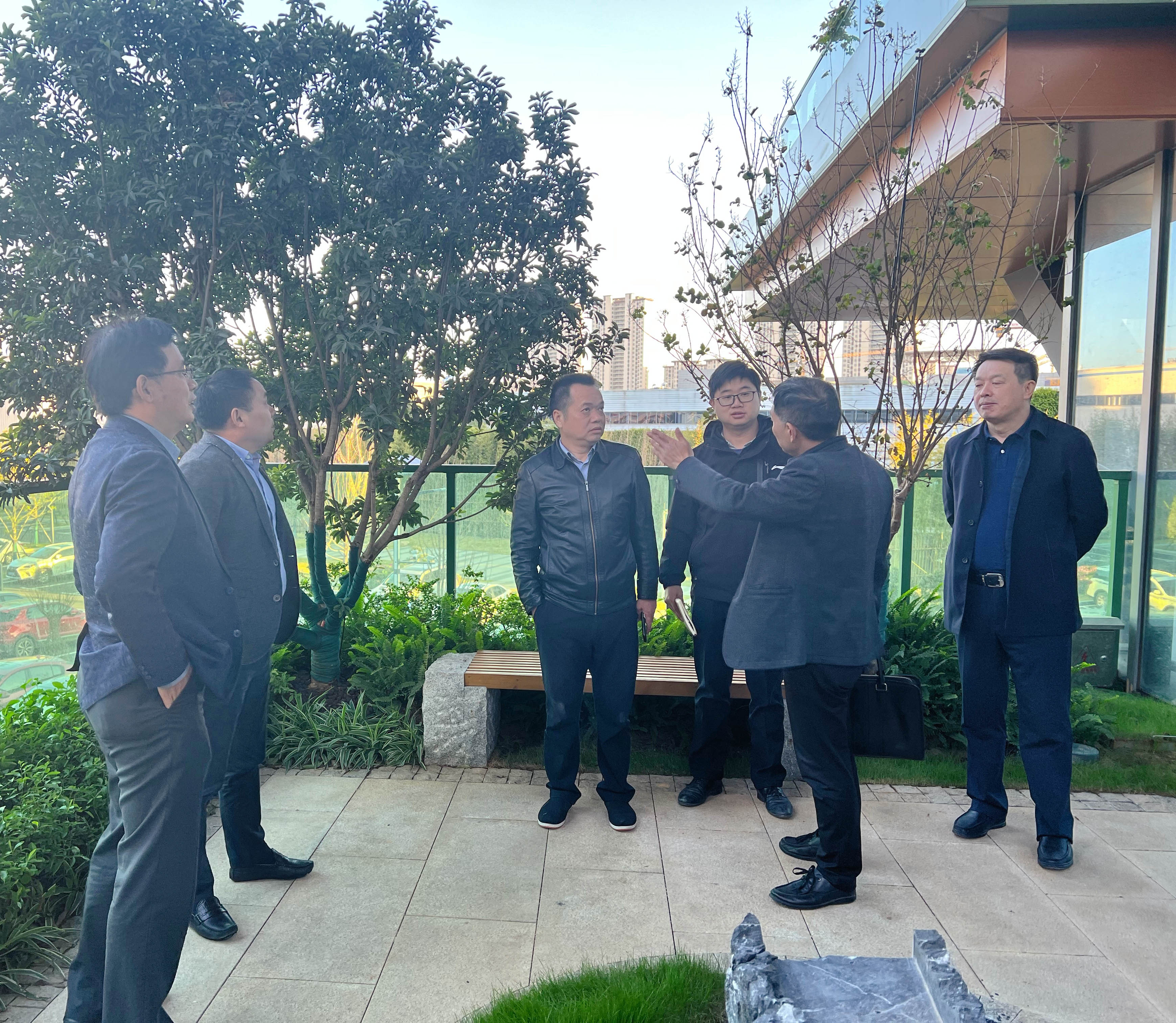 会后,在许总的陪同下,考察团一行实地参观了未来立体生态建筑(国际)创新中心的垂直绿植、庭院景观及模拟实验装置,详细了解了我司的产品优势及项目进展情况,并对我司立体生态创新建筑的建筑模式及设计理念表示充分认可。