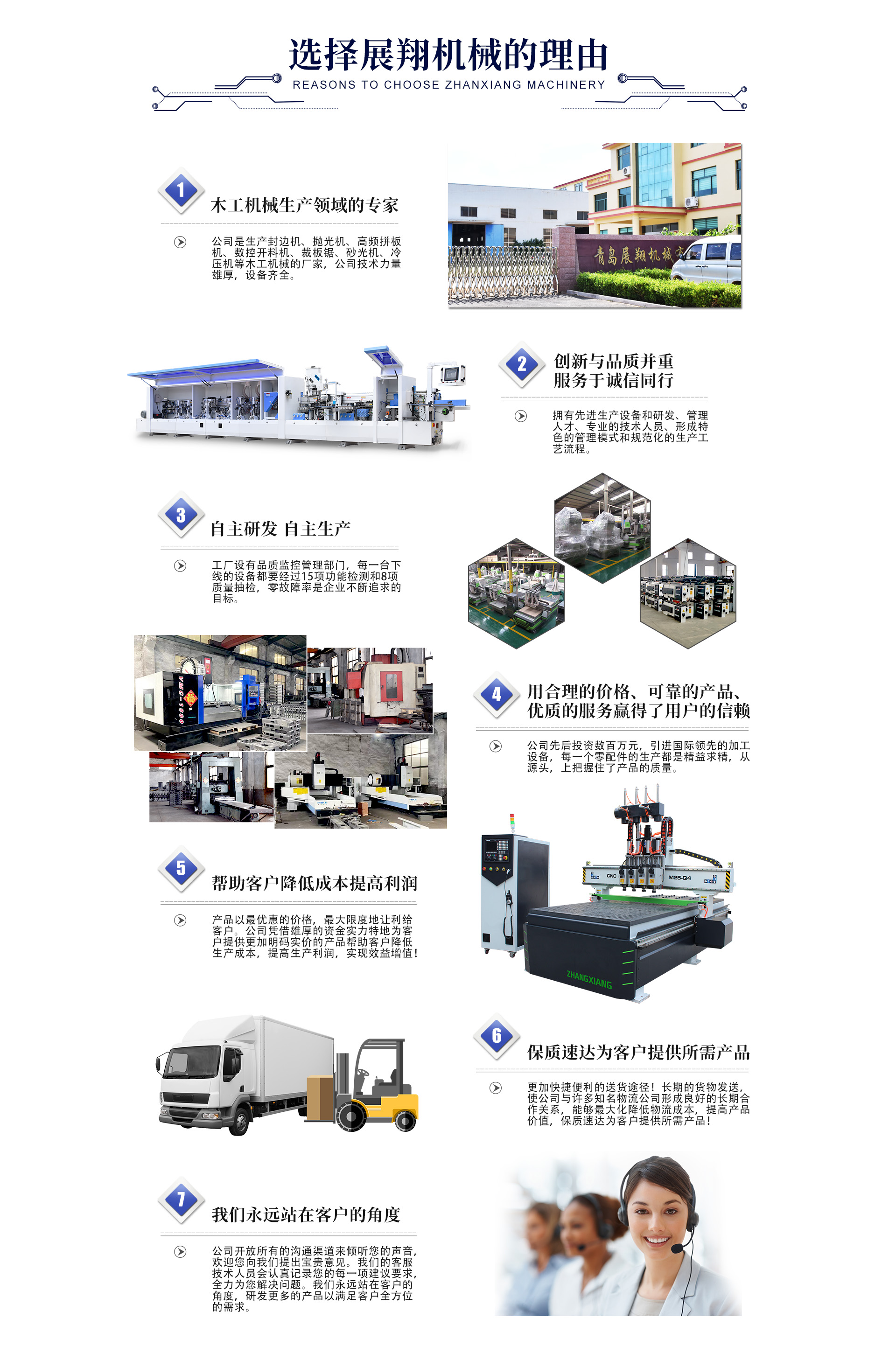 “专业”、“敬业”、“快速”的服务理念是每一个展翔人的工作标准,恪守“诚信、感恩、阳光、创新、共赢”的企业价值观,展翔机械构件了其独特的企业文化,奠定了企业永恒的发展动力。展翔机械一直致力于做行业的领先者,打造一流的木工机械生产企业!